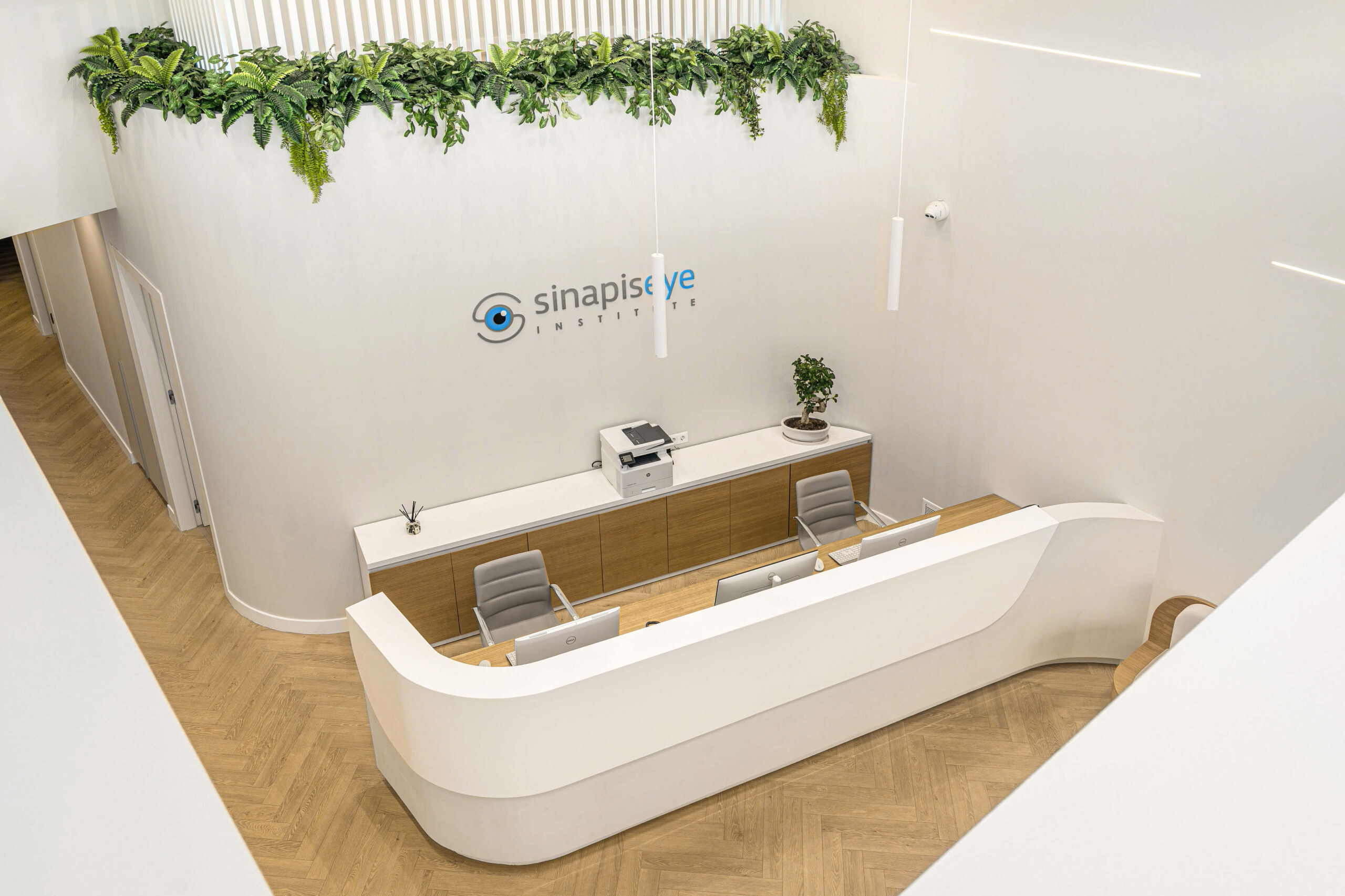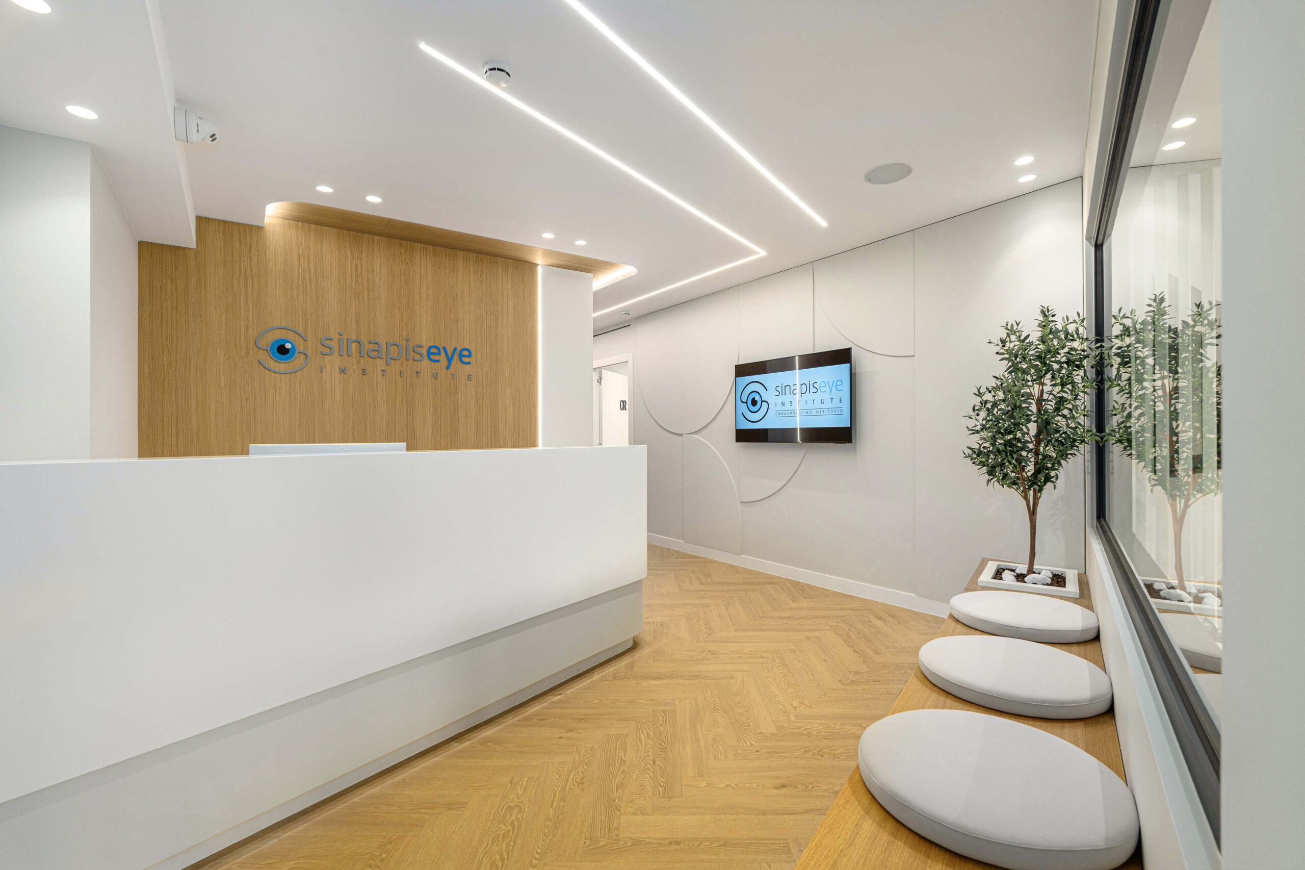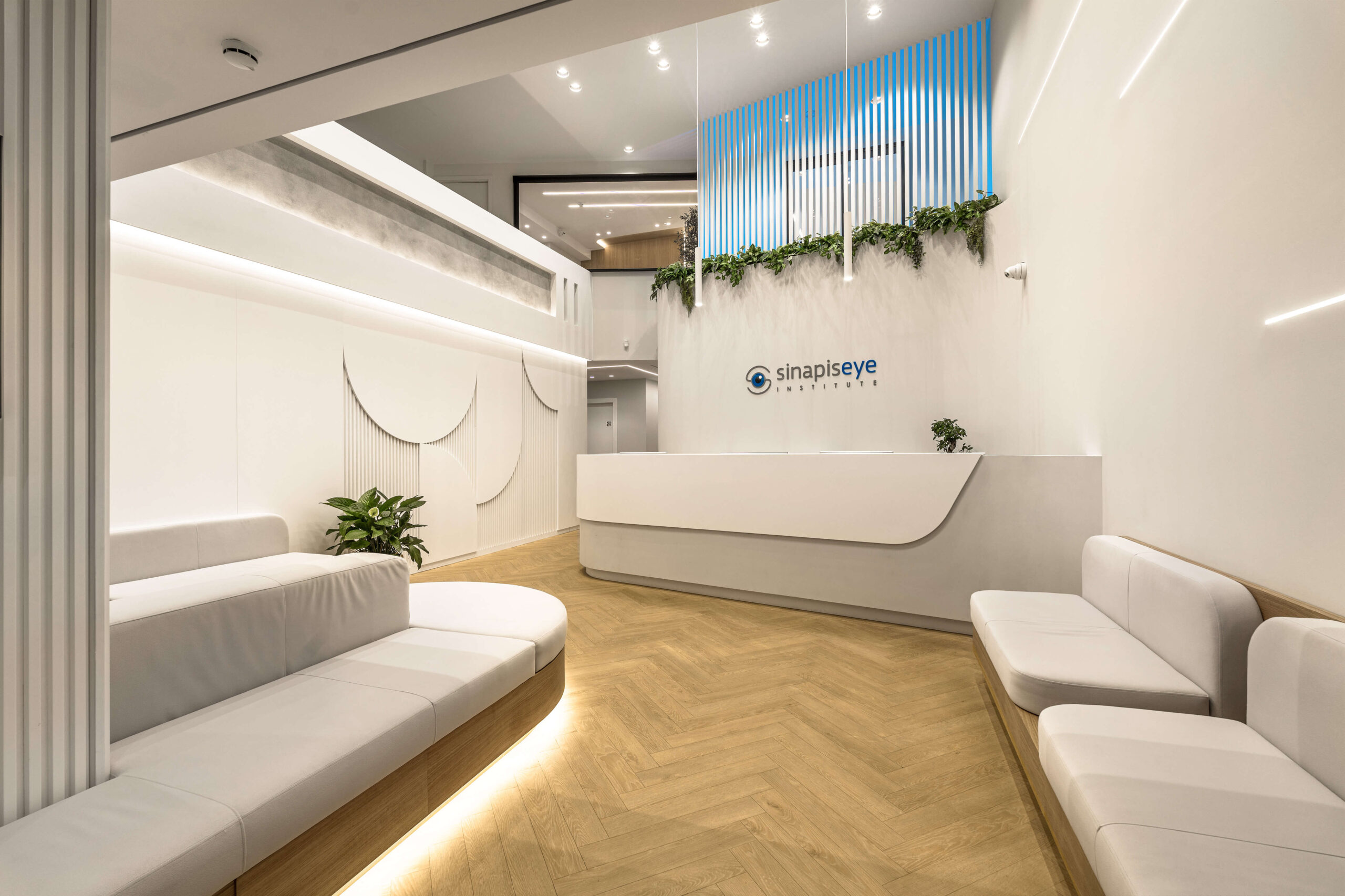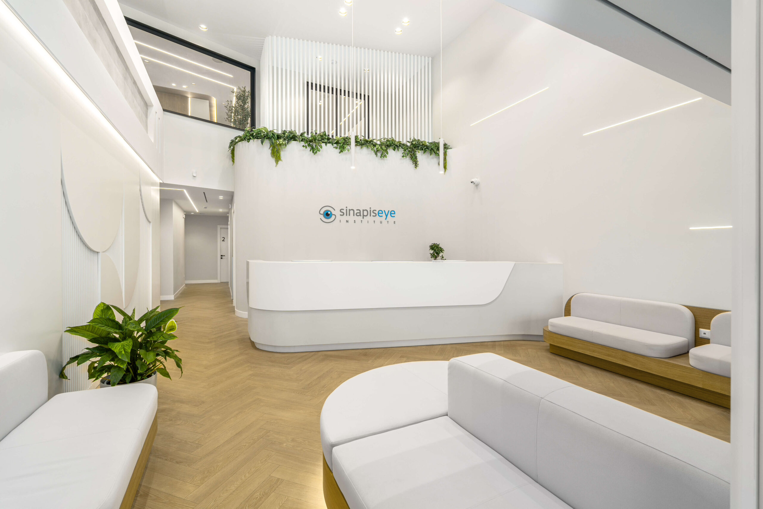 Ένα έργο εσωτερικής αρχιτεκτονικής ιατρικού χώρου που εκφράζει τον διπλό χαρακτήρα του Sinapis Eye Institute: ιατρική αριστεία και αναβαθμισμένη εμπειρία οπτικών.